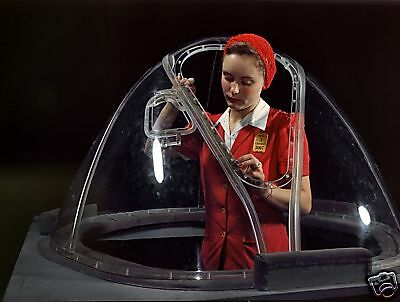 Above left: Magazine advertisment (Dieline) Above right: Plexiglass airplane windshield (Dieline)